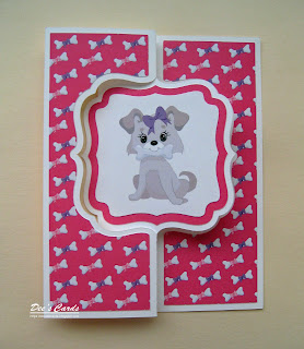 Here's another flip swing style card I made for the little girls at the Cards For Hospitalized Kids Charity using a fun precolored puppy image and dog bone patterned paper from the Girly Puppy Combo pack by AMB Illustrations on Etsy.